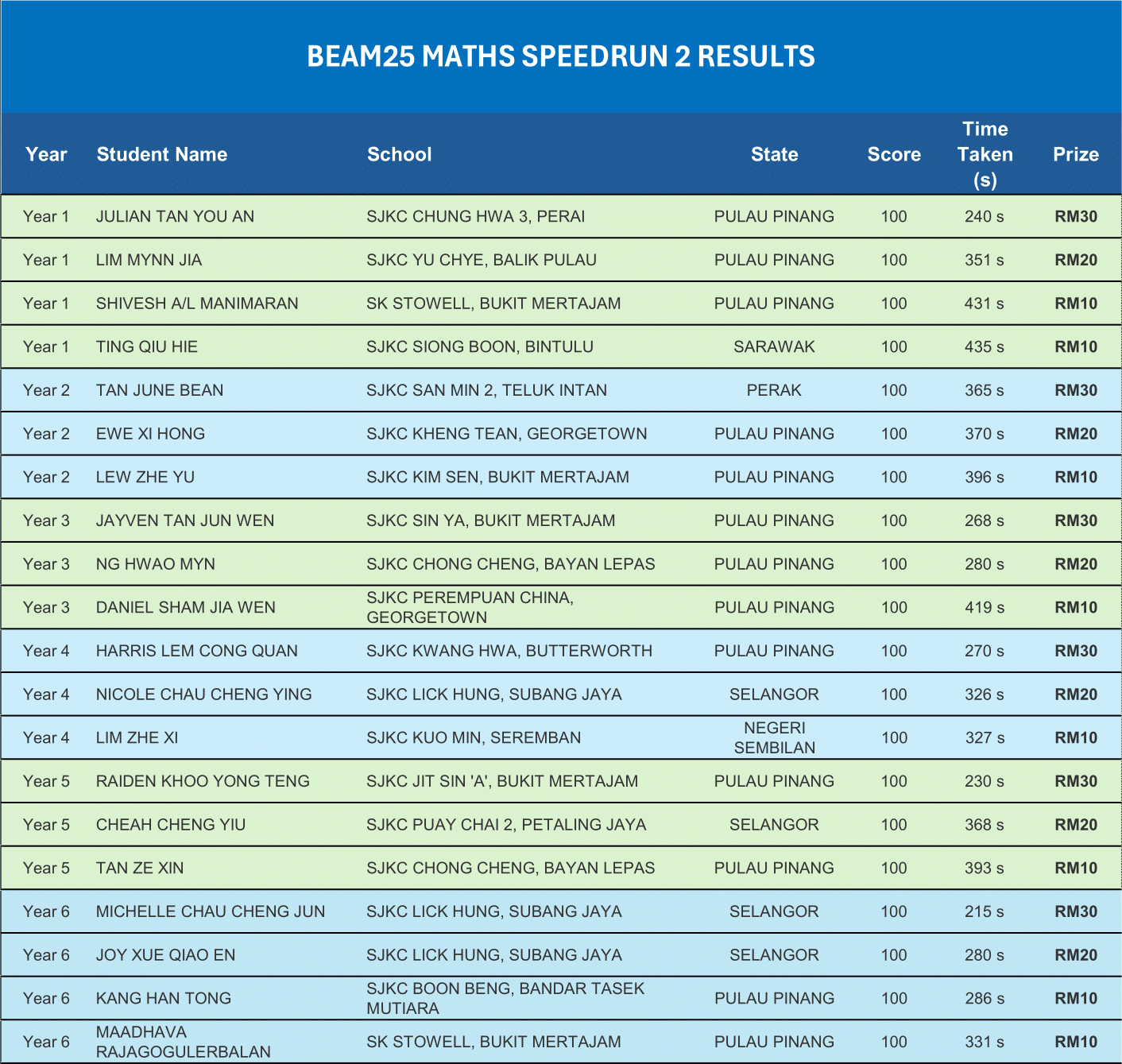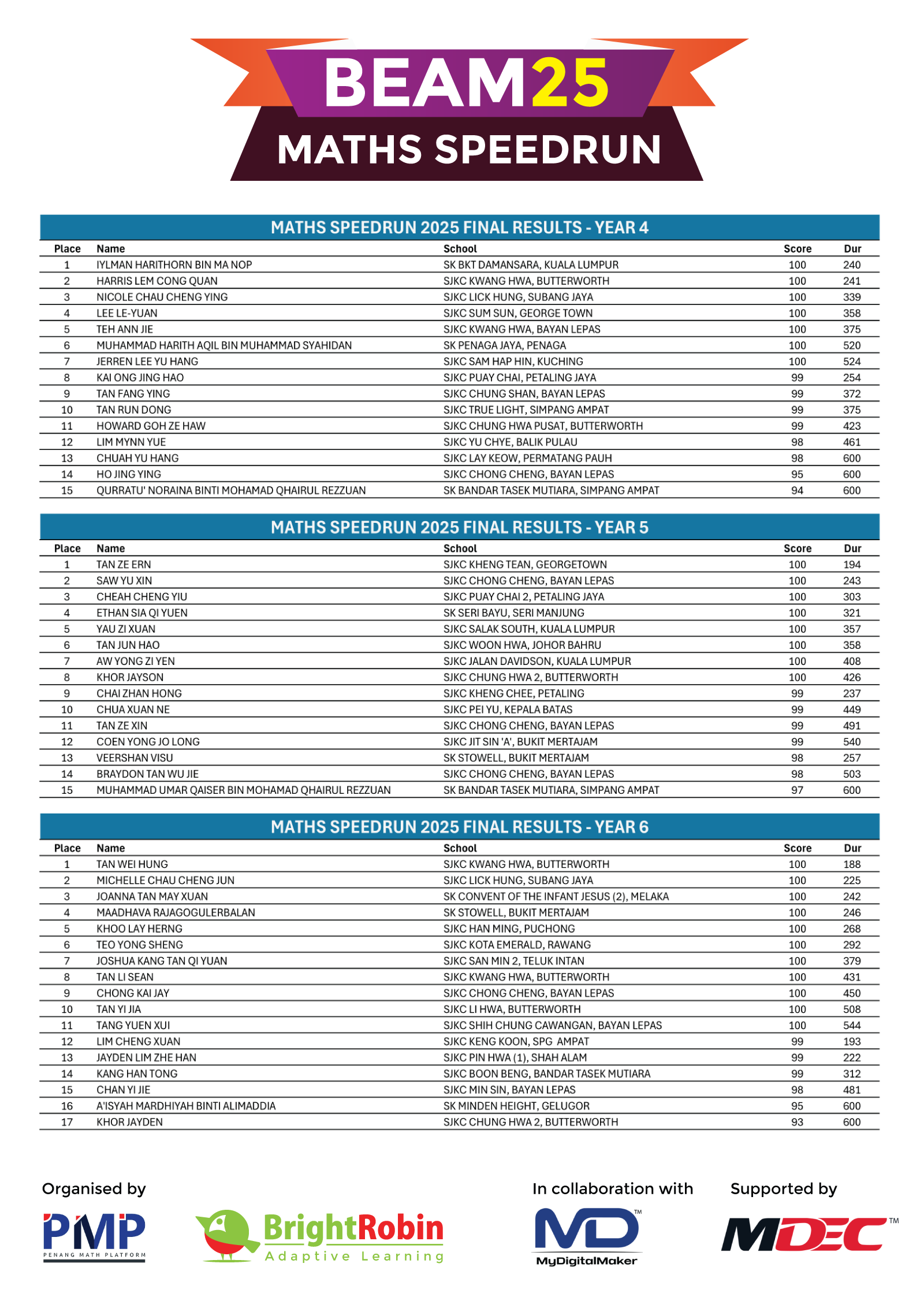 Maths Speedrun 2025 Results