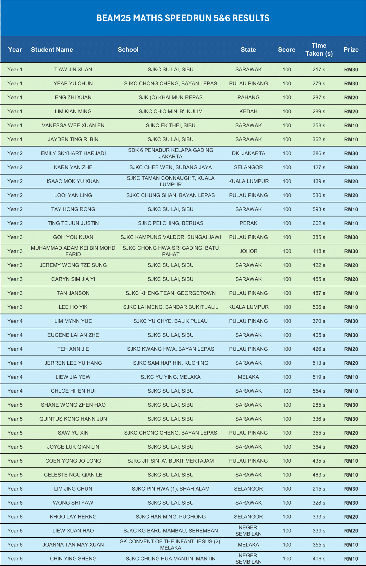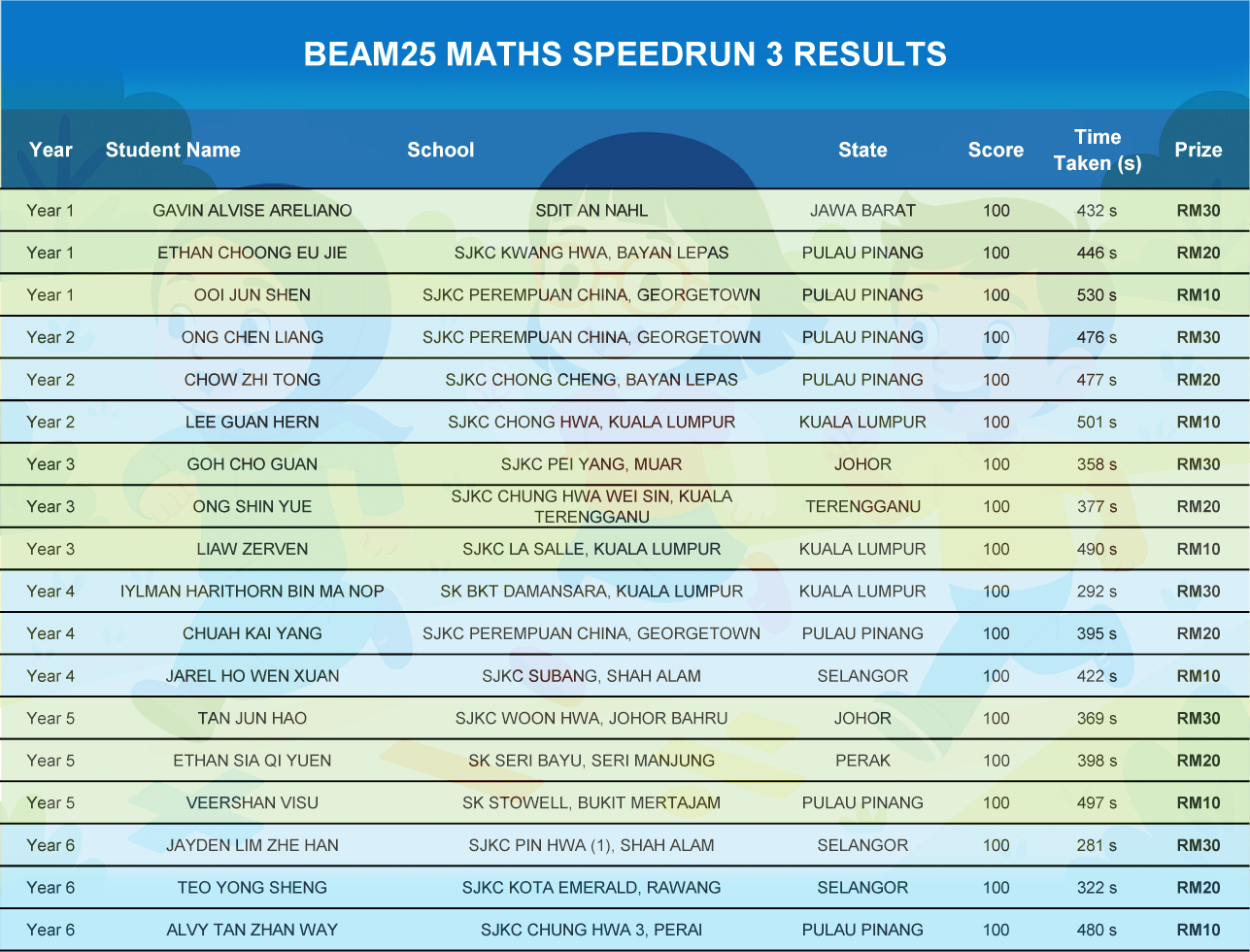 Maths Speedrun 2025 Results